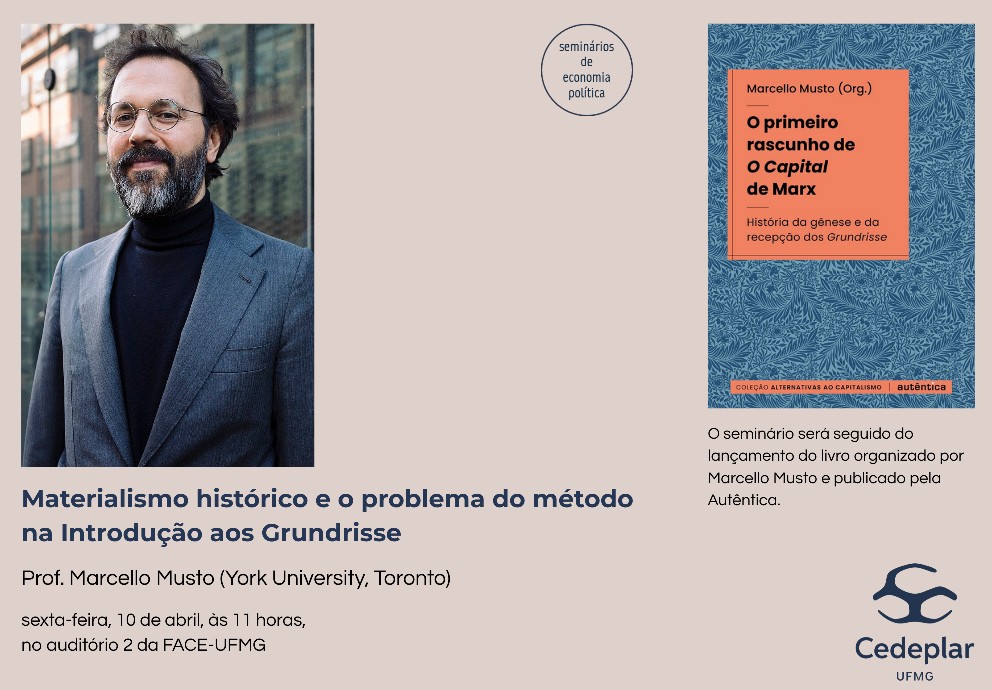 O Professor Marcello Musto, da York University, estará na Faculdade de Ciências Econômicas da UFMG para a realização de um seminário intitulado “Materialismo histórico e o problema do método na Introdução aos Grundrisse”.